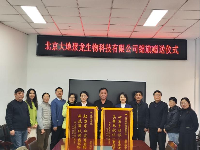 近日,北京市延庆区北京大地聚龙生物科技有限公司总经理马艳明一行,来到365英国上市公司,赠送锦旗及感谢信。我院党委统战部、科技处、社会服务处、365英国上市公司相关领导、北京延庆区大柏老村科技小院团队成员、林学系部分教师参加,座谈会由团队负责人陈洪伟主持。