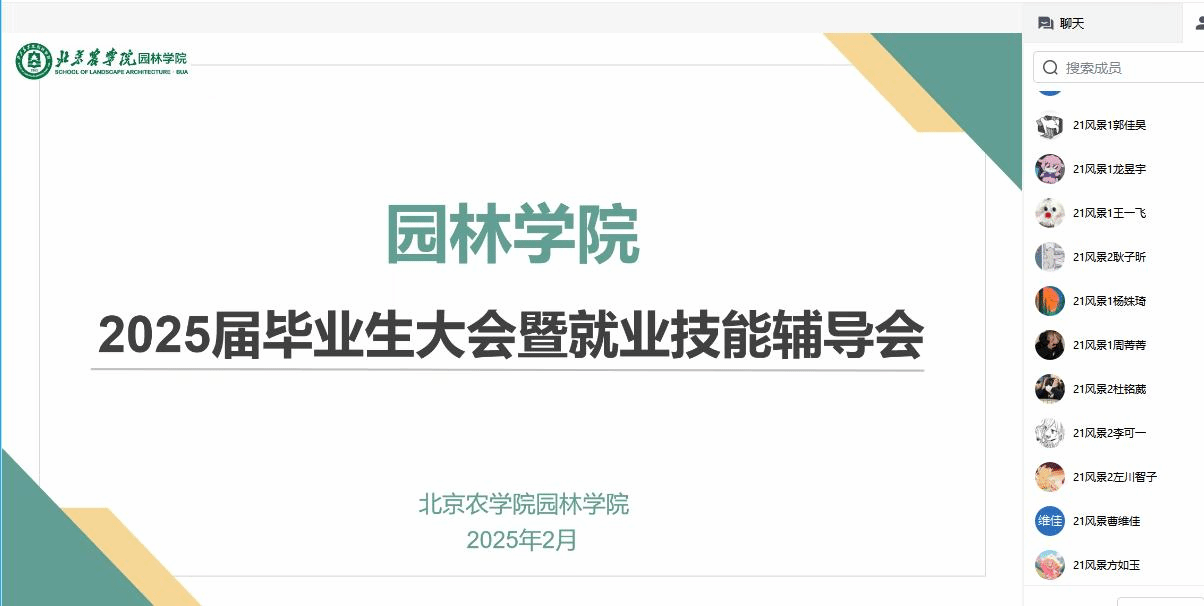 根据假期就业工作特点和需求,学院细化工作安排,开展就业技能辅导会与校友就业经验分享会,分享会上邀请2023届林学专业本科毕业生、2023年北京市大学生志愿服务西部计划志愿者向琴;2024届林业专业研究生毕业生、365英国上市公司团委行政助理赵一锦;2024届风景园林专业事业单位上岸研究生毕业生宋锐;2024届林学专业三支一扶上岸本科毕业生田思思进行就业经验分享,帮助2025届毕业生进一步掌握相关政策信息,发掘自身的特点、选择合适的岗位,更加充分的进行备考,以提高考试成功率。