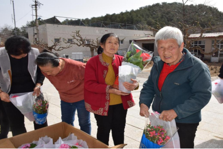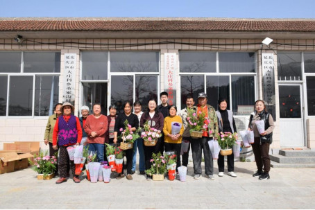 随后,侯芳梅又对所带来的盆花的生态习性,栽培要点进行一一讲授,为积极参与插花活动的村民准备30盆红掌用于奖励;更运来100余盆包括长寿花、瓜叶菊在内的易养护花卉,供每户村民认养。领花现场气氛热烈,不到半小时盆栽便被领取一空。村里的胡书记感慨道:“这些花花草草就像火种,既美了院子,更暖了人心!”