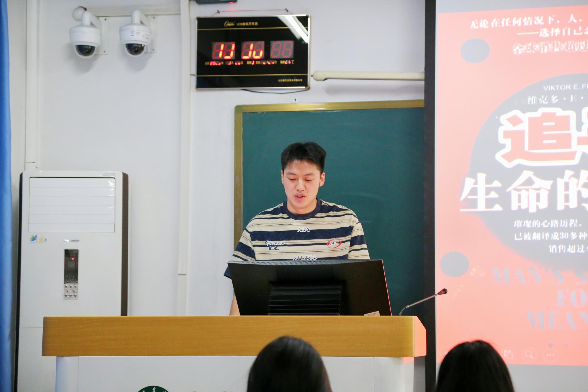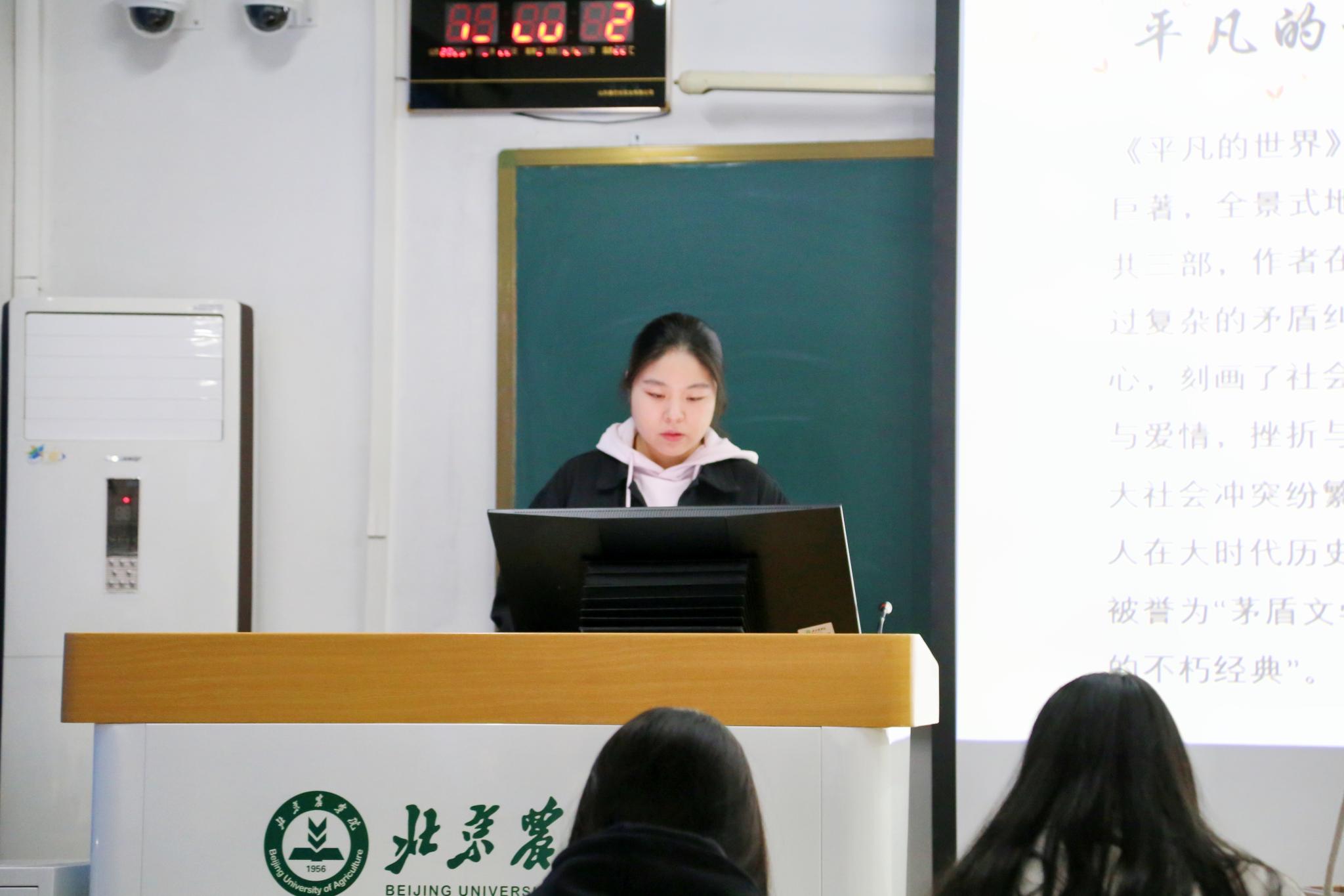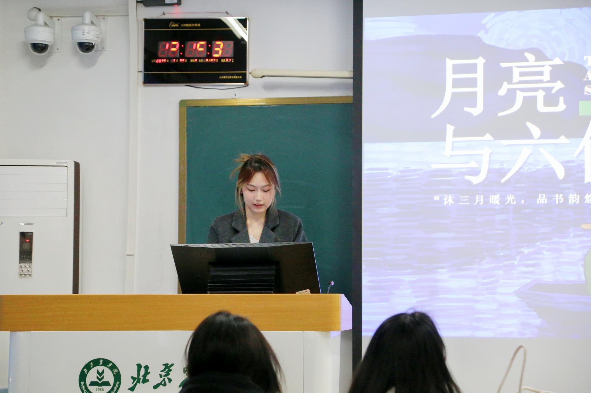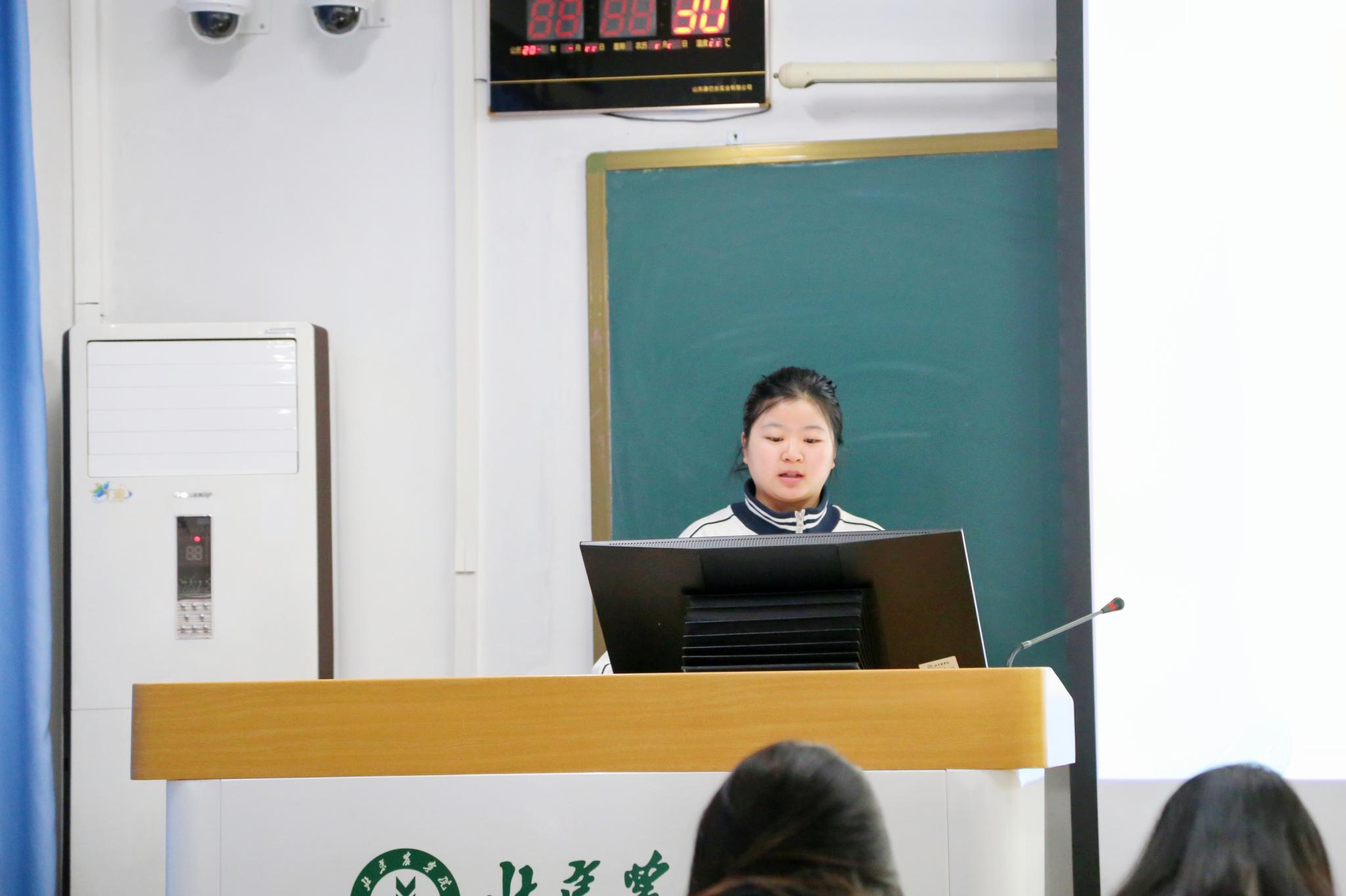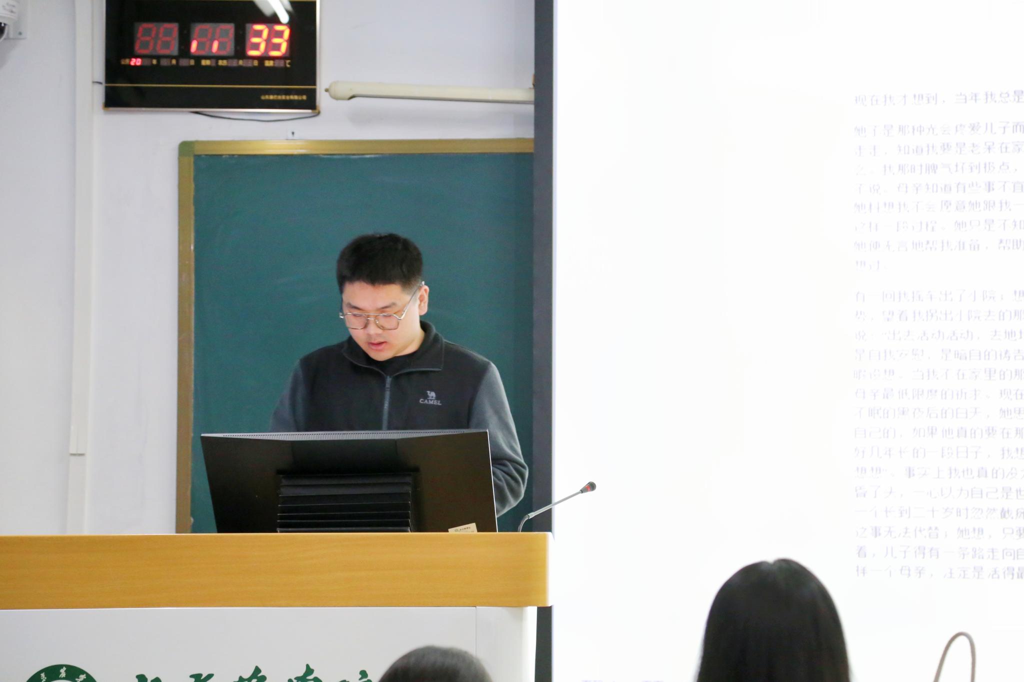 “愁来愁去,人生还是那么样一个人生,世界也还是那么样一个世界。假如把自己看得伟大,你对于烦恼,当有“不屑”的看待;假如把自己看得渺小,你对于烦恼,当有“不值得”的看待。”李沛青同学为我们带来了《给青年的十二封信》生动的朗诵。
