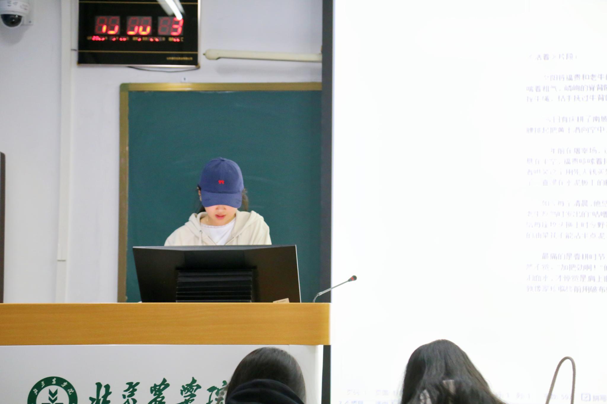 “夕阳将福贵和老牛的影子拉得细长,两个佝偻的轮廓渐渐融进五座土坟的阴影里。福贵解开拴牛绳,枯手抚过牛背凹陷处——那里本该架着犁耙的位置,如今积着层薄灰。”王昱婷同学朗诵的《活着》,带我们领略生命的顽强。